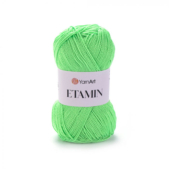 Etamin sunt fire de tricotat subtiri, au aspect matasos, se pot utiliza la crosetat, cusut sau brodat.