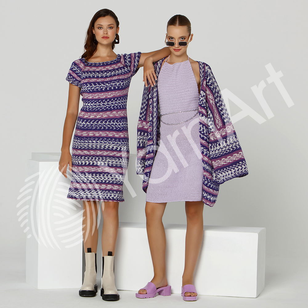 Datorita alternantei culorilor pe lungimea firului, fiecare confectie poate sa aiba un model diferit in functie de numarul de ochiuri care este pus initial pe ace.